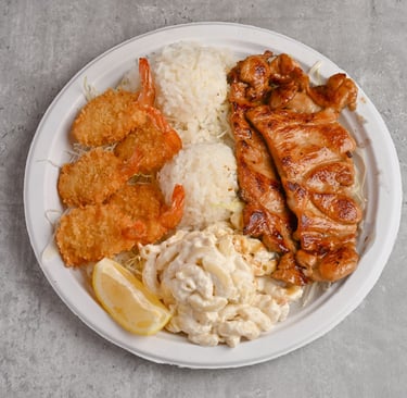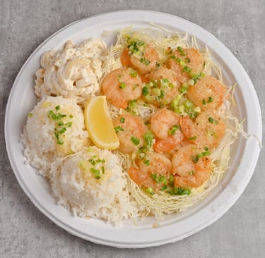 Deshelled prawns sauteed in our garlic butter sauce doused with Hawaiian seasonings.