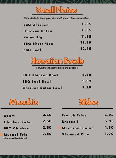 Bold Hawaiian Flavors that will satisfy your tastebuds.